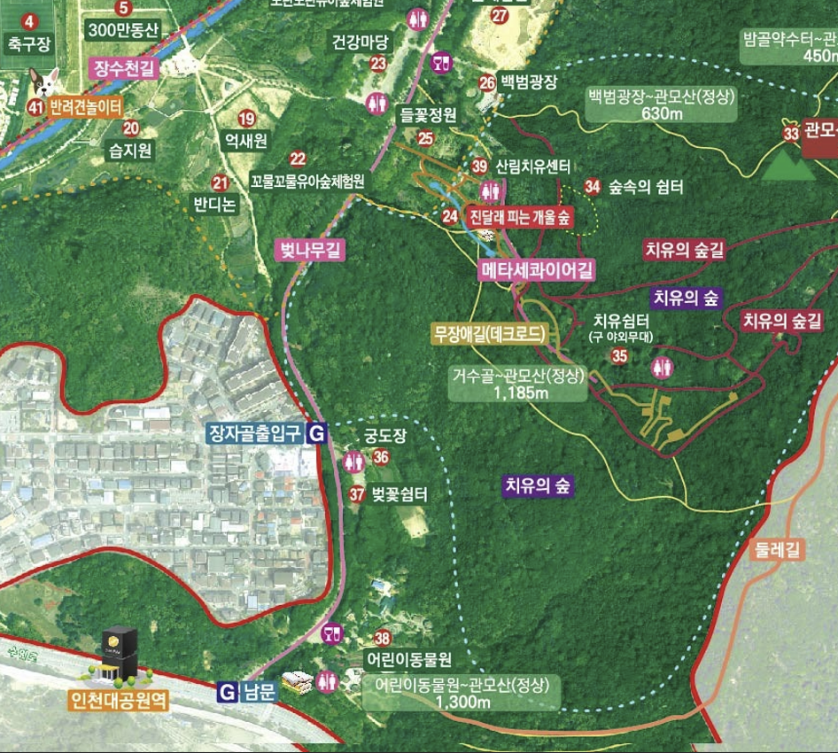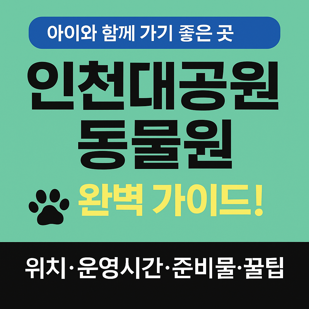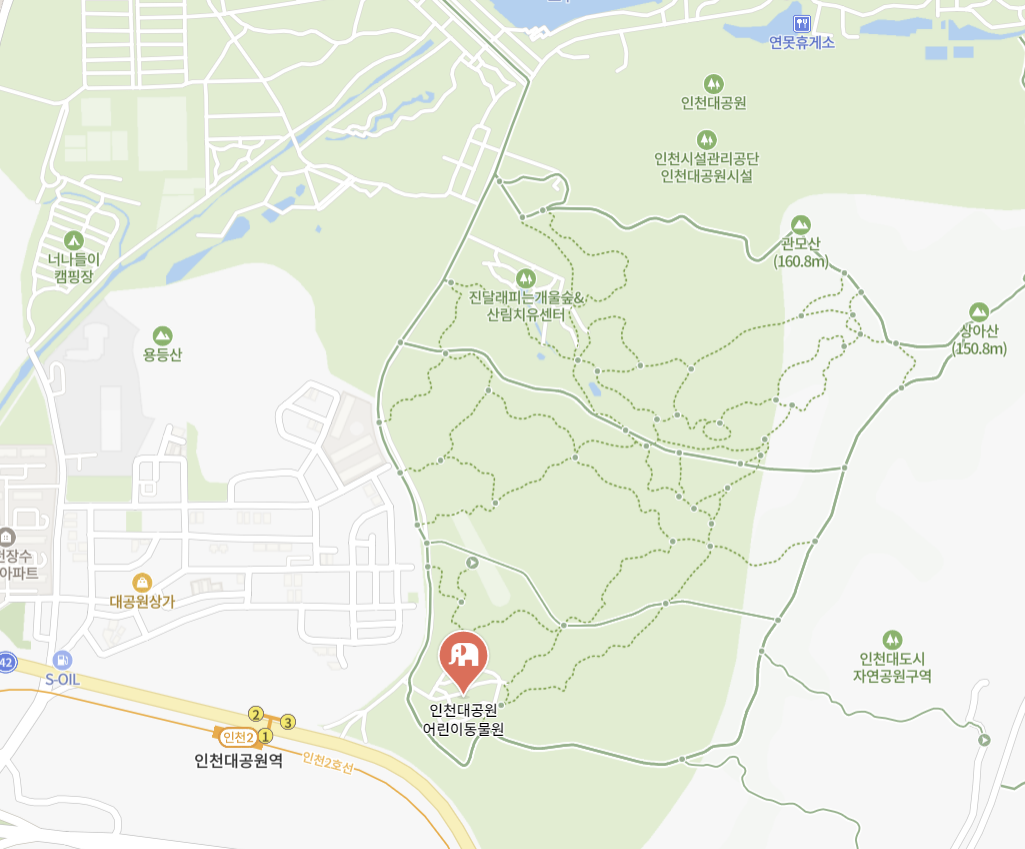 인천대공원은 인천광역시 남동구에 위치한 대형 종합 공원이에요. 이 안에 동물원, 식물원, 놀이터, 산책로, 자전거 대여소까지 모두 갖춰져 있어요.