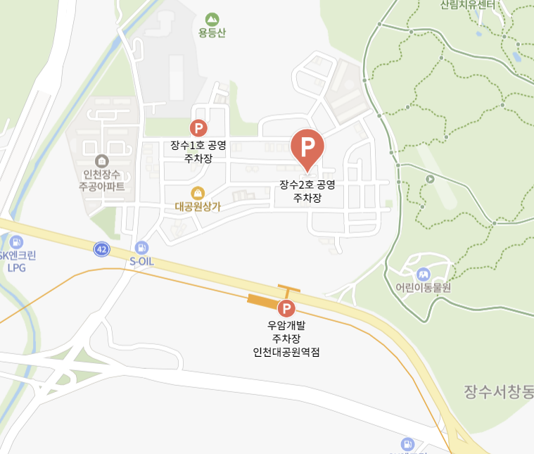 - 특징: 인천대공원역 인근에 위치하여 대중교통 이용객에게 편리하며, 어린이동물원까지 도보로 약 7분 소요됩니다.