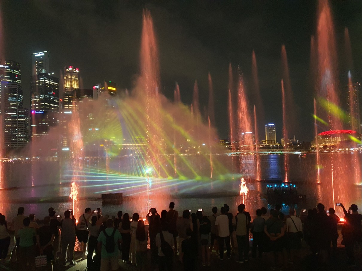 싱가포르 마리나베이샌즈 호텔 이벤트 플라자의 수면에 펼쳐지는 무료 야간 공연입니다.