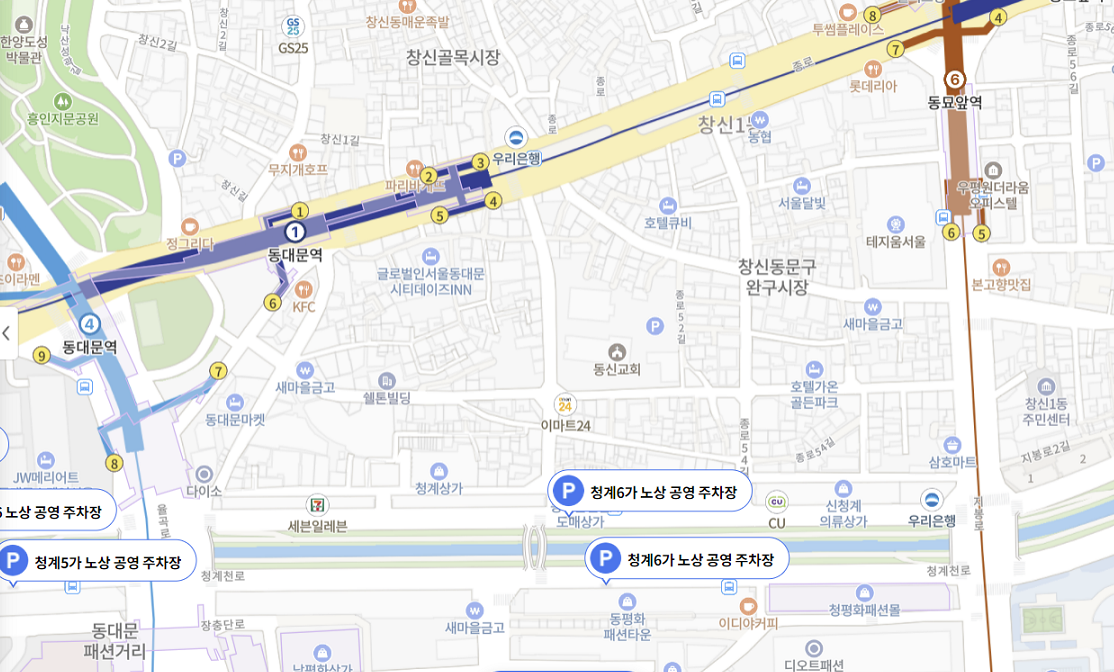 제일 가까운 공영주차장은 청계 6가 노상주차장인데 가격이 비싼 편입니다.