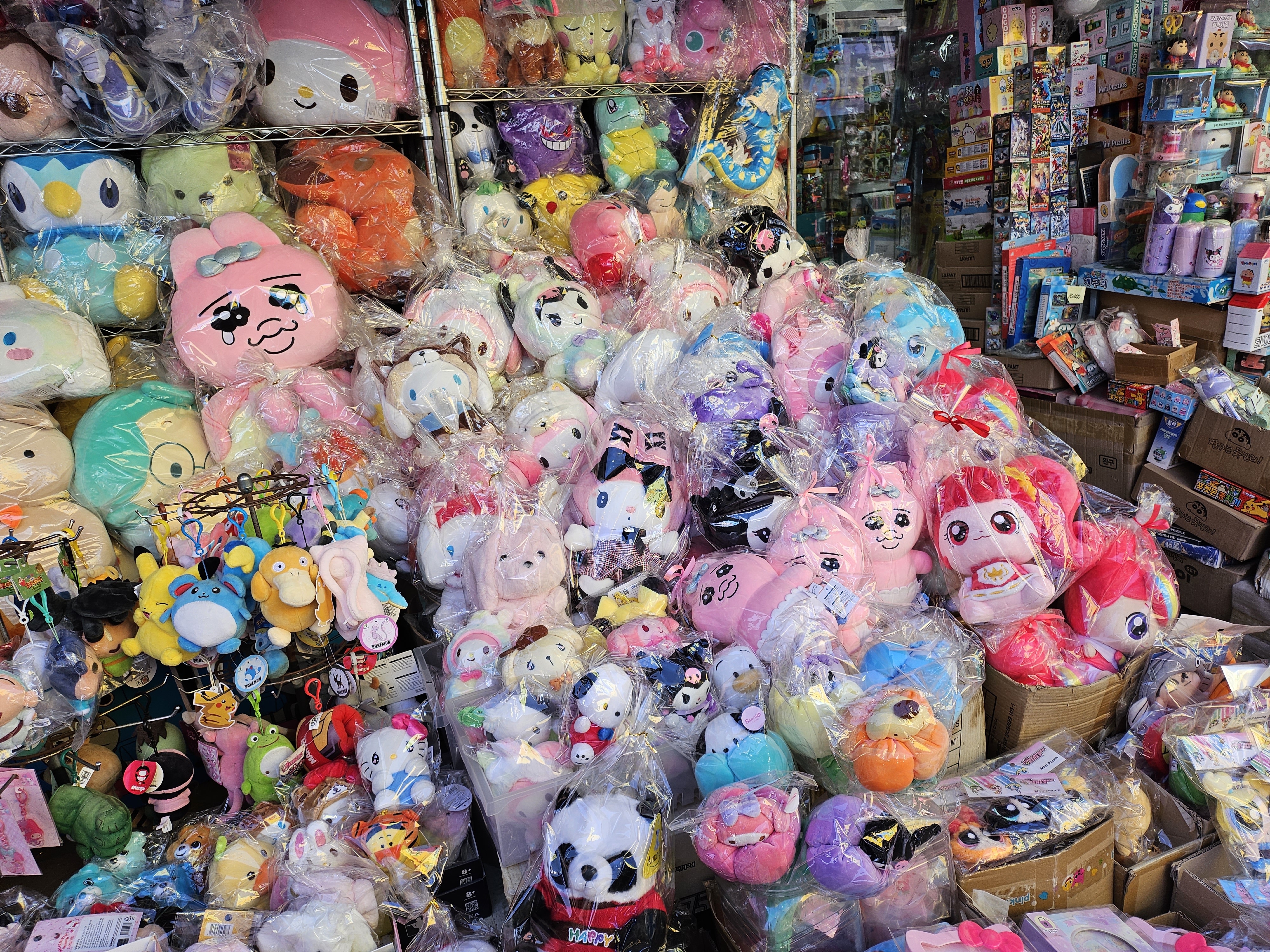 포켓몬, 쿠로미, 마이멜로디 등 봉제인형들도 잔뜩 있구요.