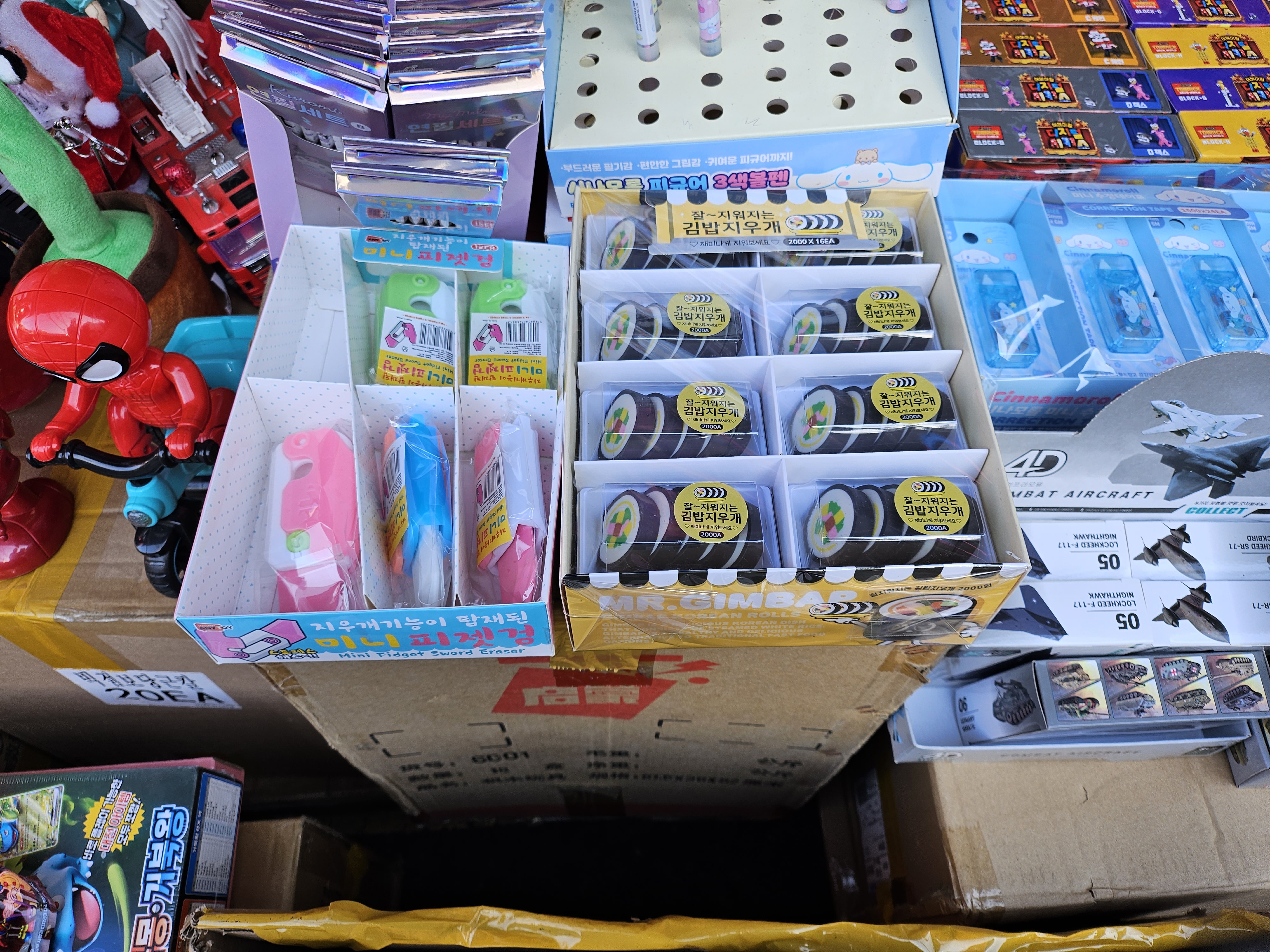 각종 캐릭터들로 된 장난감, 문구류가 많이 있습니다.