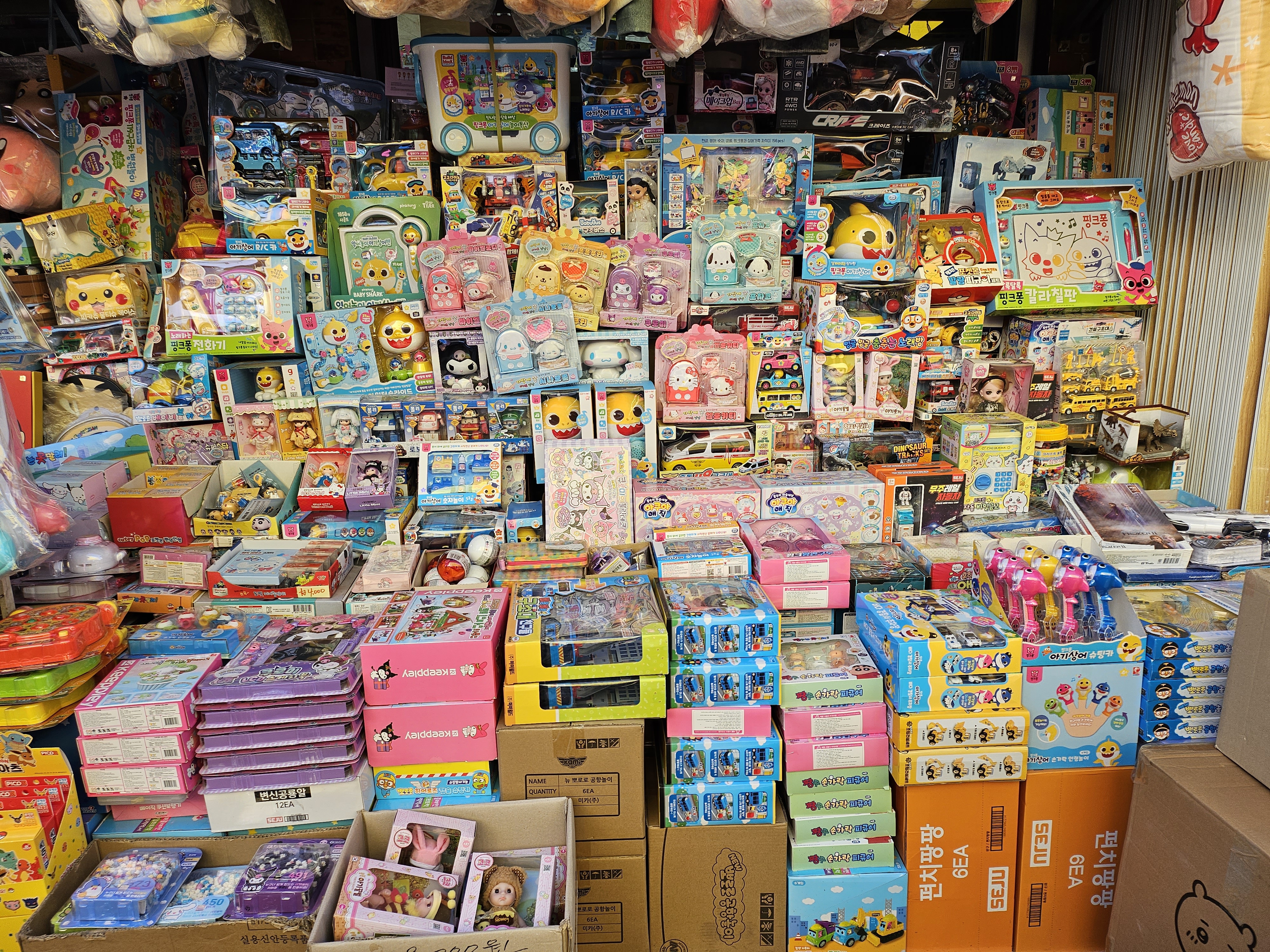 입구로 들어가면 매대마다 유아들이 좋아하는 핑크퐁부터 뽀로로, 쿠로미, 마이멜로디 등
