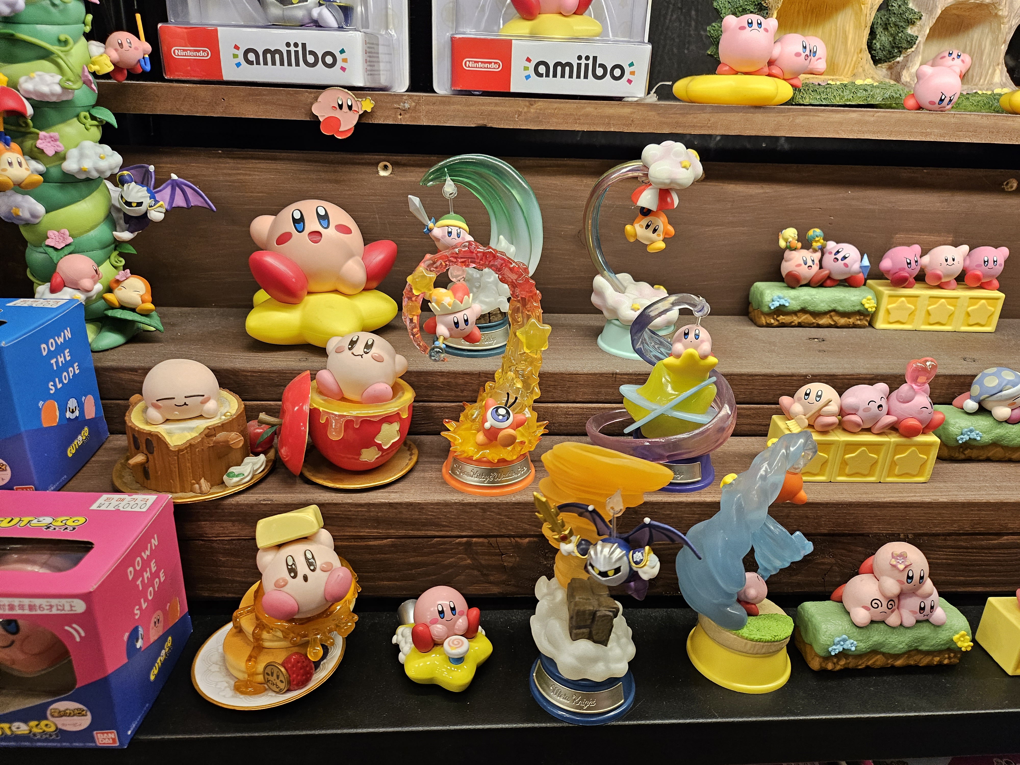 귀여운 별의 커비 피규어들, 조그만 인형들이 진열되어 있었어요.