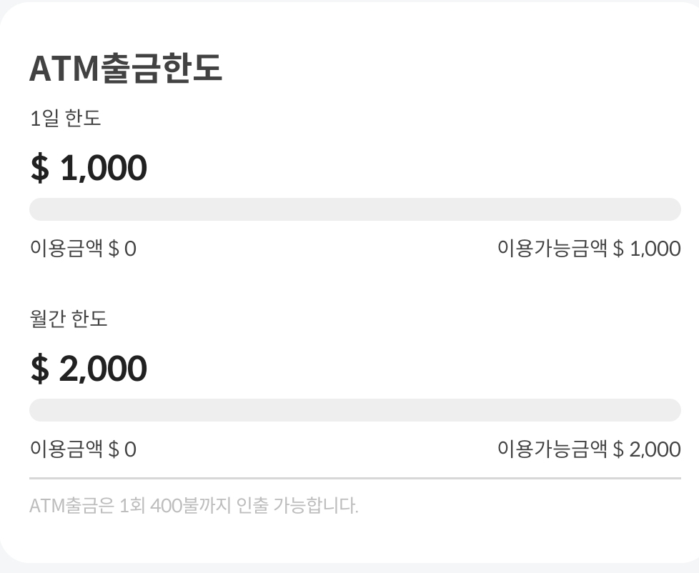 충전 횟수와 결제 한도는 제한 없고 연간 최대 충전금은 미화 10만 불까지입니다.
