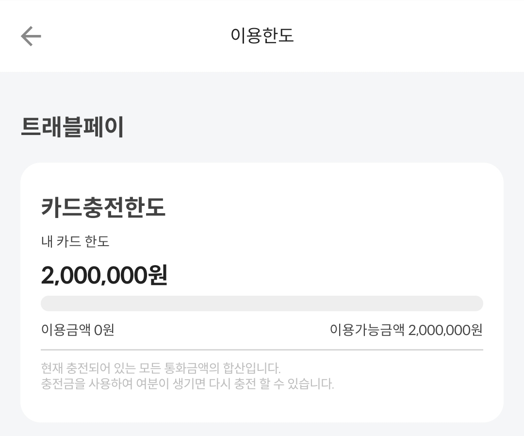 카드 충전 한도는 앱 내 '마이'에서 확인이 가능합니다.