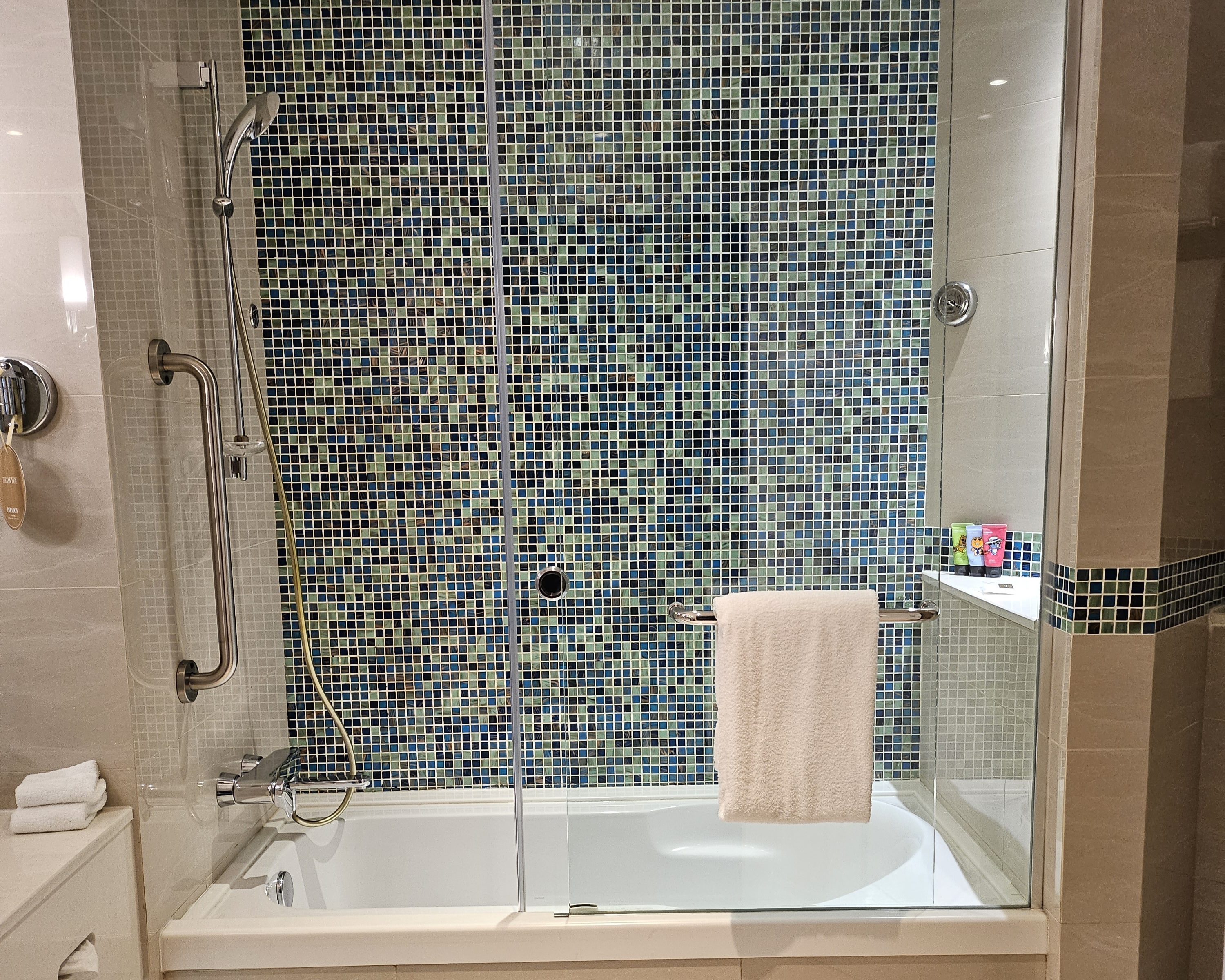 화장실은 욕조에 유리파티션을 해두어서 물이 밖으로 덜 튀고 좋았습니다.