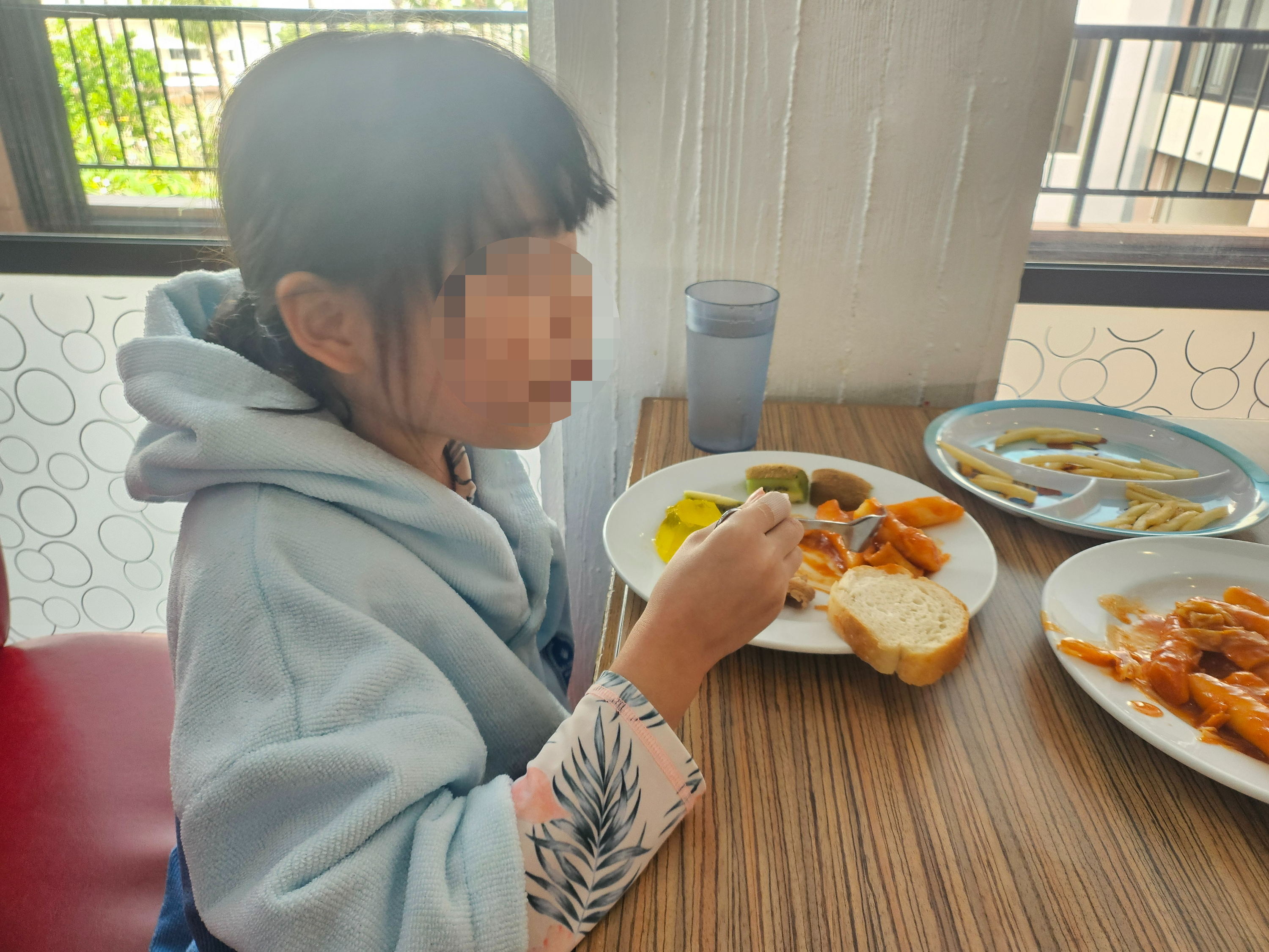 아이들 먹을 수 있는 된장국이나 밥, 김치, 카레, 생선 등 한국 음식이 매일 나오니 좋았어요.