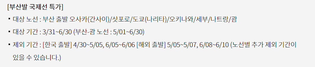 출발일 : 2024. 3. 31. ~ 6. 30. (괌은 5월부터)