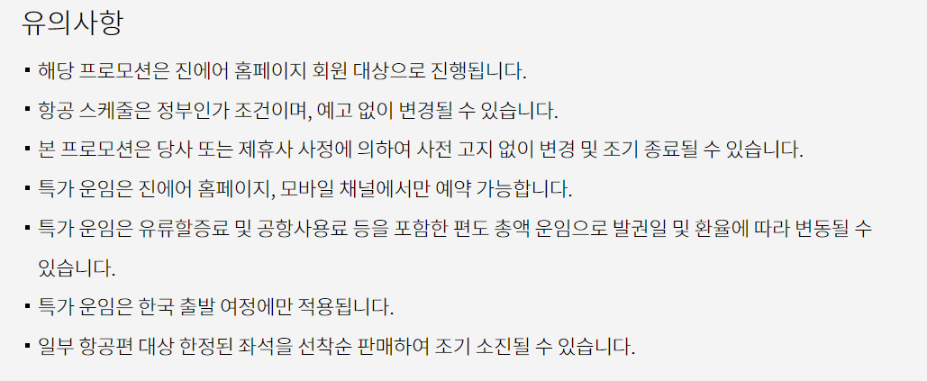진에어 부산발 국제선 특가 내용을 살펴보면