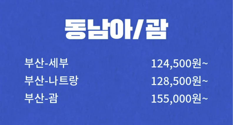 세부, 나트랑은 12만 원 대, 괌은 15만 원 대가 최저가입니다.